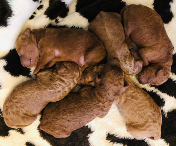 Gretta gave birth to a beautiful litter of Red & Apricot Mini-Multigen Goldendoodle puppies! They went to their forever homes on Sunday, February 12th, 2023.